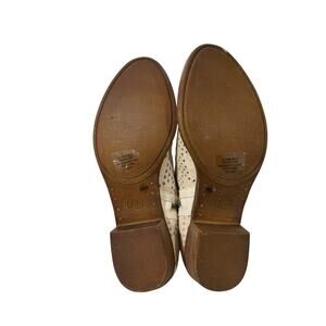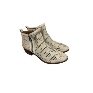 Lucky Brand Women Basel3 Leather Perforated Cream Ankle Bootie Western 9.5 W