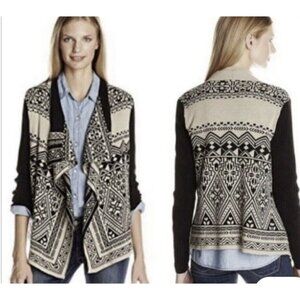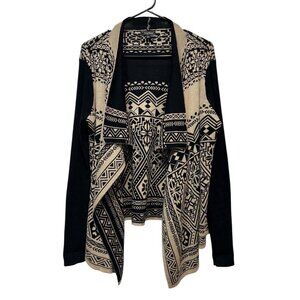 Lucky Brand Women Black / Beige Waterfall Wrap Open Cardigan Sweater Size Large