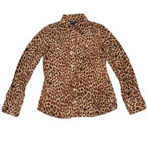 Lucky Brand Women Cheetah / Animal Print Blouse - 100% Silk - Size Small