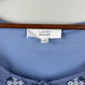 Lucky Brand Women Dress Blue Size Large Boho V Neck Tie Short Sleeve Smock