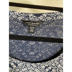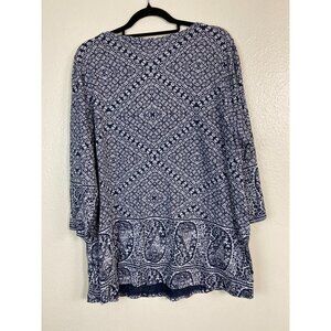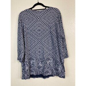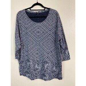 Lucky Brand Womens 3/4 Sleeve Paisley Floral Print Tunic Top Plus size 3X Cotton Modal Blend Blue White