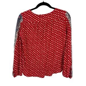 Lucky Brand Women Top Floral Red Long Sleeve Cottton linen V Neck size Medium
