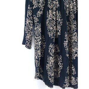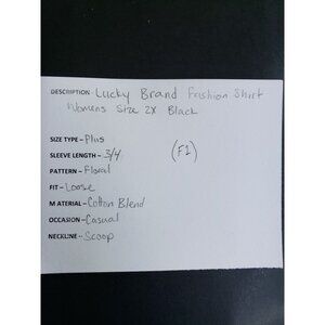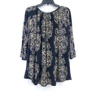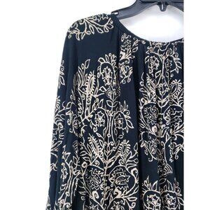 Lucky Brand Womens 2X Black & Beige Floral Print Cotton Blouse With 3/4 Sleeves