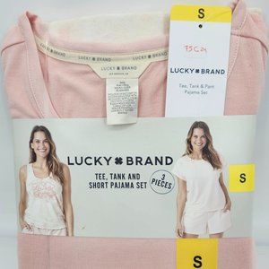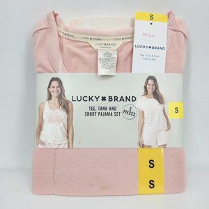 Lucky Brand Women's 3Pieces Tee Tank & Shorts Pajama Set Light Pink Small NWT