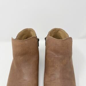 Lucky Brand Womens 6 Brown Burklee Zip Ankle Leather Booties Stacked Block Heel