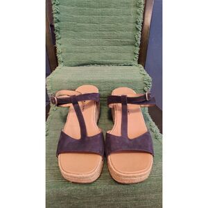 Lucky Brand Women's 7.5M Blue Strap and Tan Wedge Espadrille Sandals