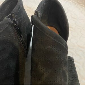 Lucky Brand Women’s 8.5 Black Suede Ankle Booties Perforated Heeled Shoes
