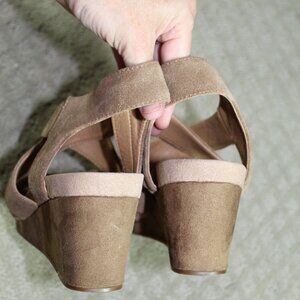 Lucky Brand Women's 8.5M Tan Suede Leather Wedge Heeled Sandals