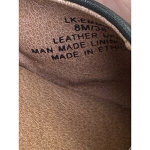 Minimal wear on soles, slight crease on leather. Measurements: length = 9.75 inches, width = 3.25 inches.