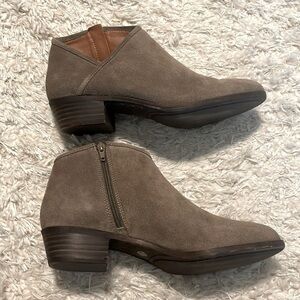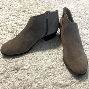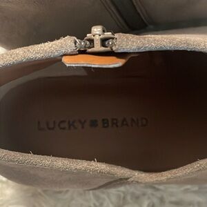 Lucky Brand Women’s Ankle Booties Size 11 Tan Suede Brekke Heel Asymmetrical