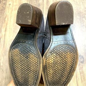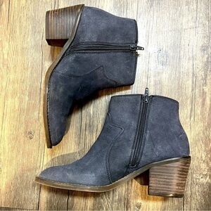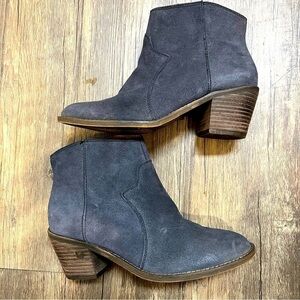 Super cute and comfy Lucky Brand navy blue ankle booties with side zipper closure for comfortable wear.