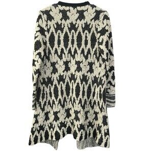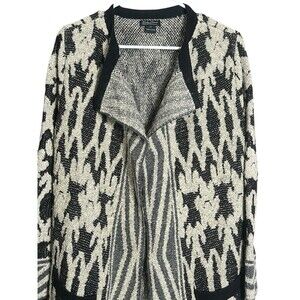 Lucky Brand Womens Black Beige Gray Open Front Geomstric Cardigan Sweater Size M