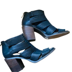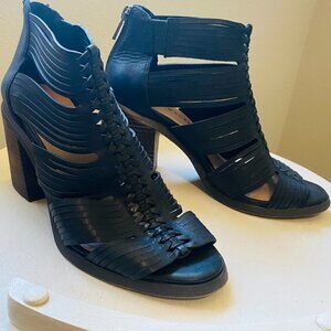 Lucky Brand Women's Black Leather Lace Bootie Open Toe High Heels Size 7.5 M