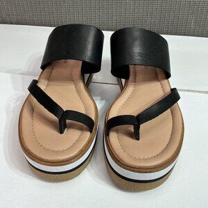 Lucky Brand Women's Black Leather Platform Sandals Size 8 M