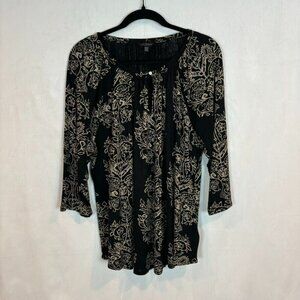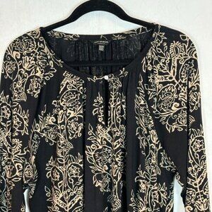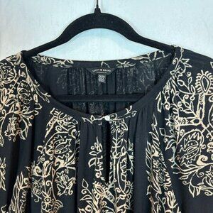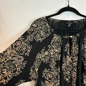Lucky Brand Women's Black Paisley Boho 3/4 sleeve top size 2X Whimsigoth Peasant