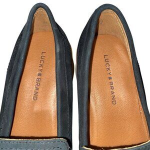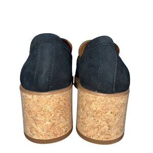 Lucky Brand Womens Black Suede platform Cork Heel Loafers Size 6.5. Preppy