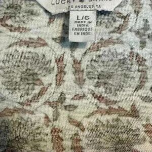 Lucky Brand Womens Blouse Large L Floral Top Long Sleeve Cotton Blend