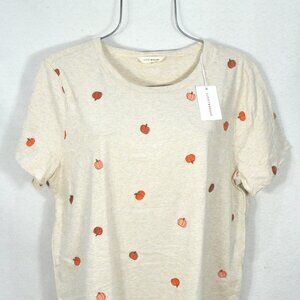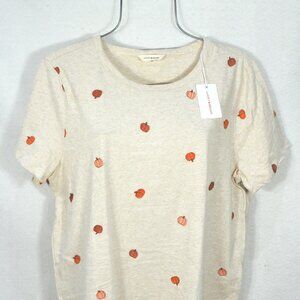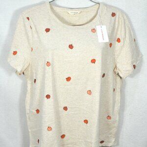 Lucky Brand Women's Blouse XL Fall Beige Orange Embroidered Pumpkins Top Shirt