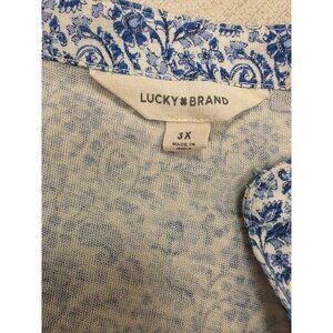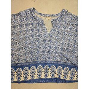 Lucky Brand Womens Blue Floral Boho Top 3X Cotton Linen Blend Plus Coastal Cotta
