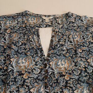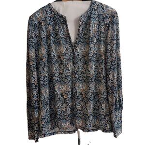 Lucky Brand Women’s Blue Printed V-Neck Jersey Top Button Front Size Large