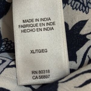 Flaw: There are 3 small holes on one of the sleeves (in the area of the shoulder). See pictures. Because of the busy print, it is not easily visible.