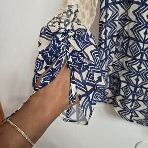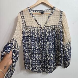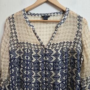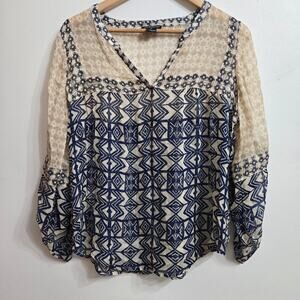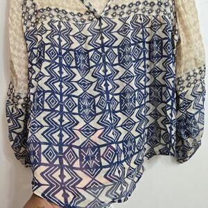 Lucky Brand Womens Boho Southwestern Tribal Print Hippie Sheer Mixed Media Top M