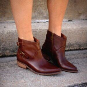 Lucky Brand Women's Brown Leather Caelyn Buckle Accents Ankle Bootie Sz 11 2972