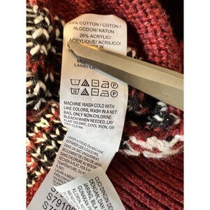 Lucky Brand Women’s Button Up Cardigan LG Cowl Neck Red Black Aztec Western