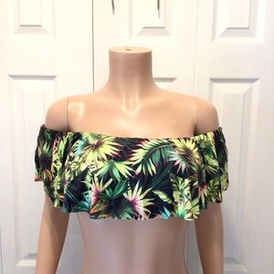 Lucky Brand Womens Coastal Palms Off The Shoulder Bandeau Swimsuit Top Size Lg. New with tags. From smoke free home. *top only. Bottoms/accessories not included. Pattern placement will vary with each top.