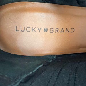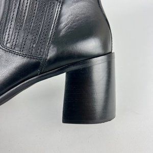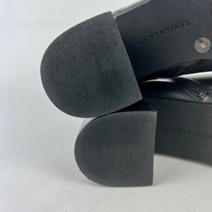 Lucky Brand Womens Debruh Black Leather Heeled Bootie Chunky Ankle Boots size 10