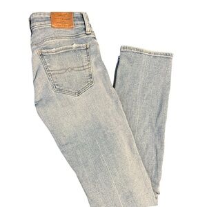 Discover comfort and style with these light blue jeans from Lucky Brand. Pre loved with a little spot on front leg. Size 00 24
