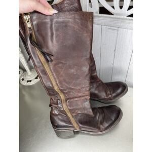 Lucky Brand Womens Distressed Leather Tall Riding Boots Zip Wide Calf Size 9