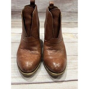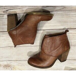 Lucky Brand Womens Ehllen Boot Size 5.5 Cognac Brown Leather Block Heel Bootie