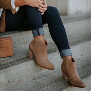 Lucky Brand Womens Ellamy Suede Western Ankle Boots Tan Booties Size 8.5