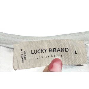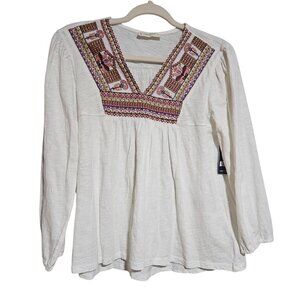 Lucky Brand Women’s Embroidered Top Ivory L Boho Chic Vintage Roadtrip Folk