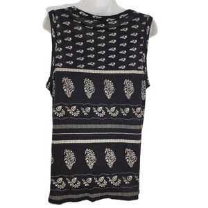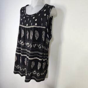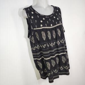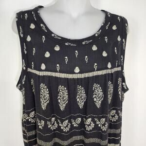 Lucky Brand Womens Embroidery Print Tank Top Large Black Linen Blend Boho Hippie