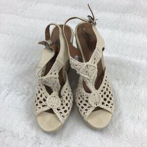 Lucky Brand Womens Espadrille Wedge Heel Platform Shoes Size 9.5 M High Crochet