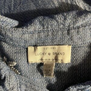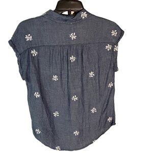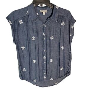 Lucky Brand Women’s Floral Embroidery Short Sleeve Button Down Blouse