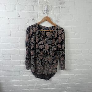 Lucky Brand Women's Floral Print Blouse Top Long Sleeve Multicolor Size Large