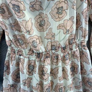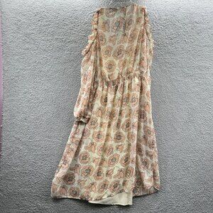 Lucky Brand Womens Garden Dress Extra Large Pink Tan Floral Cold Shoulder