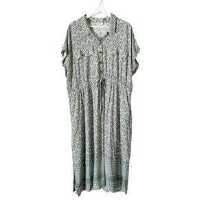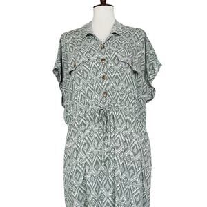 Lucky Brand Women's Geometric Print Collared Midi Dress Size 2X