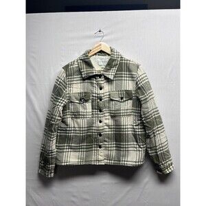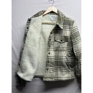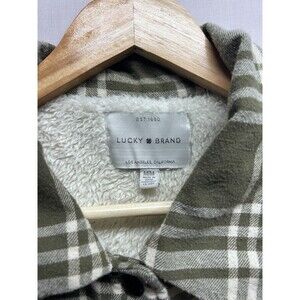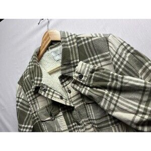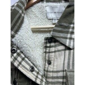 Lucky Brand Women’s Green Plaid Sherpa Coat Shacket Snap Front Medium
