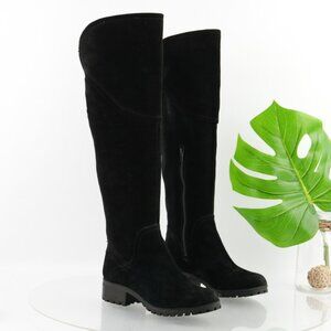 Lucky Brand Womens Harleen Riding Boot Size 6.5 OTK Black Suede Lug Sole Pull On