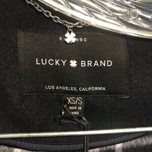 This Lucky Brand cape offers a sophisticated style with its wool blend and plaid lining. Designed for a chic look, it features a hood and a versatile fit for casual or formal occasions.