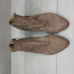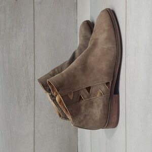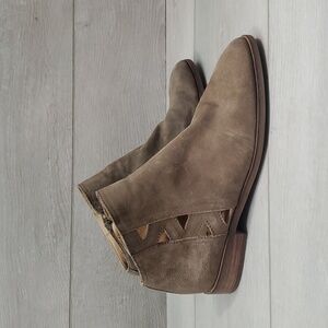 Lucky Brand Womens Jakeela Ankle Taupe Suede Heels Cutout boots shoes sz 7M