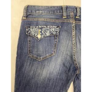 Lucky Brand Women’s Jeans 34x32 Blue Embroidered Flap Pockets