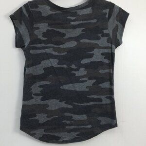 Short sleeve gray camo tee (right pictured), heathery gray camo pattern, brushed cotton, short sleeve, round hem, polyester blend, casual, lightweight, soft, simple, summer, comfortable