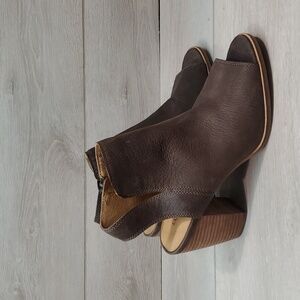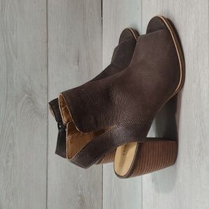 Lucky Brand Womens Jubai Peep Ankle Leather Heels Boots open toe shoes sz 10M