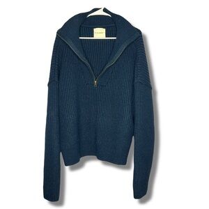 Lucky Brand Women’s Knit Chunky Sweater XXL Blue Halter Zip Popover Relax Preppy in great condition/ stretchy/ zip into nice turtleneck/ribbed thick and cozy