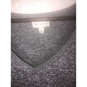 The Lucky Brand Womens Knit Top in size M is a stylish and versatile addition to any woman's wardrobe. This pullover blouse features a solid gray color, long sleeves, and a classic V-neckline, making it perfect for casual occasions. Made from viscose knit fabric with a stretch feature, this top offers a comfortable and relaxed fit. The brand's signature style and classic theme make this top a timeless and must-have piece for any woman looking for a basic yet chic wardrobe staple.